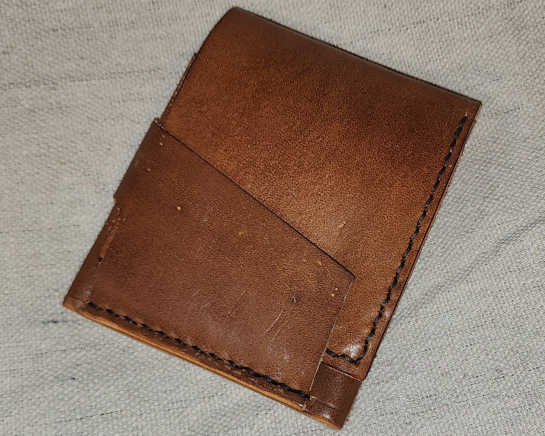 This hand-stitched leather wallet is perfect for the rugged and adventurous individual. Designed to withstand daily wear and tear, it securely holds cash and cards while maintaining a stylish and handmade aesthetic. Upgrade your everyday carry with the durable and timeless Wrap Billfold! This product is made with vegetable tan leather meaning it will develop a beautiful patina with use.